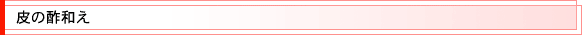細く切った皮、塩もみした薄切りキュウリを酢で和えます。※ワサビ酢醤油(酢:1/2カップ、酒:大さじ3、塩:小さじ1/2、ワサビ:小さじ1、醤油:少々)がお薦め。 |