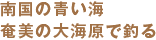 快調に航行するボートの上で、飛沫を浴びながらシェフがはしゃぐのも無理はない。東京から1200キロあまり。鹿児島県は奄美大島へとやってきた。これまでは東京近郊のポイントをめぐり、泊りのロケすらなかったのに、いきなり飛行機に乗って2泊3日の大遠征ときた。相変わらず釣りの腕はビギナー街道をひた走っているが、釣り人たちの憧れの場所のひとつである奄美大島に、早くも足を踏み入れてしまったのだ。どうもすみません。